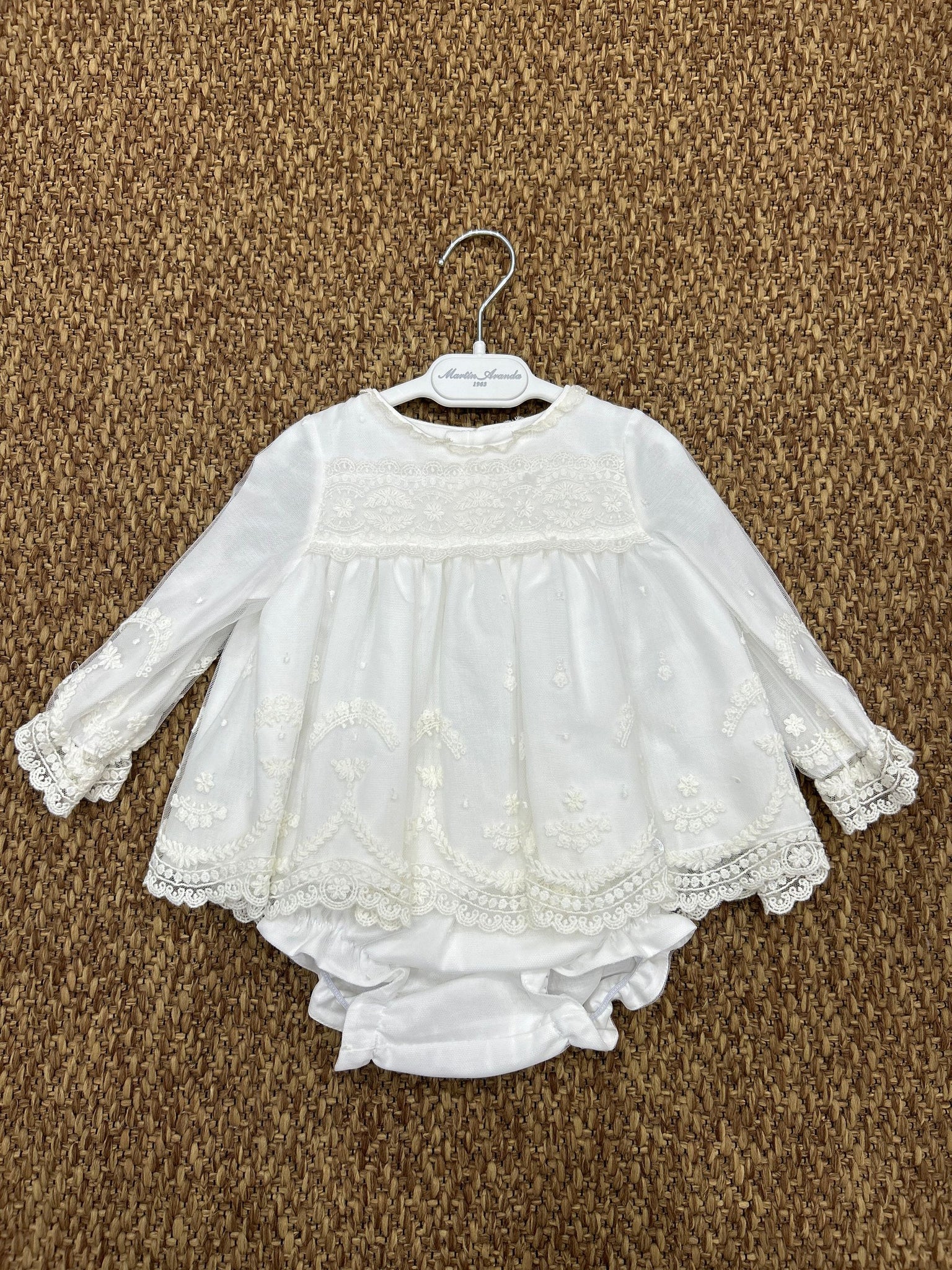 Completo bimba cerimonia 2pz in merletto con cuffia Martin Aranda