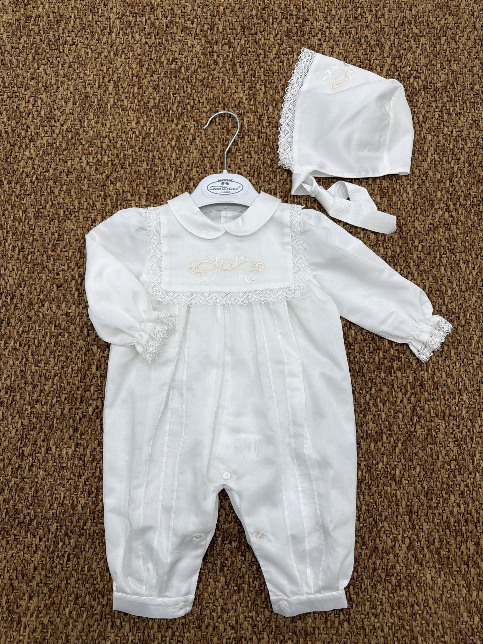 Pagliaccetto neonati con cuffia dettagli in merletto Marlù