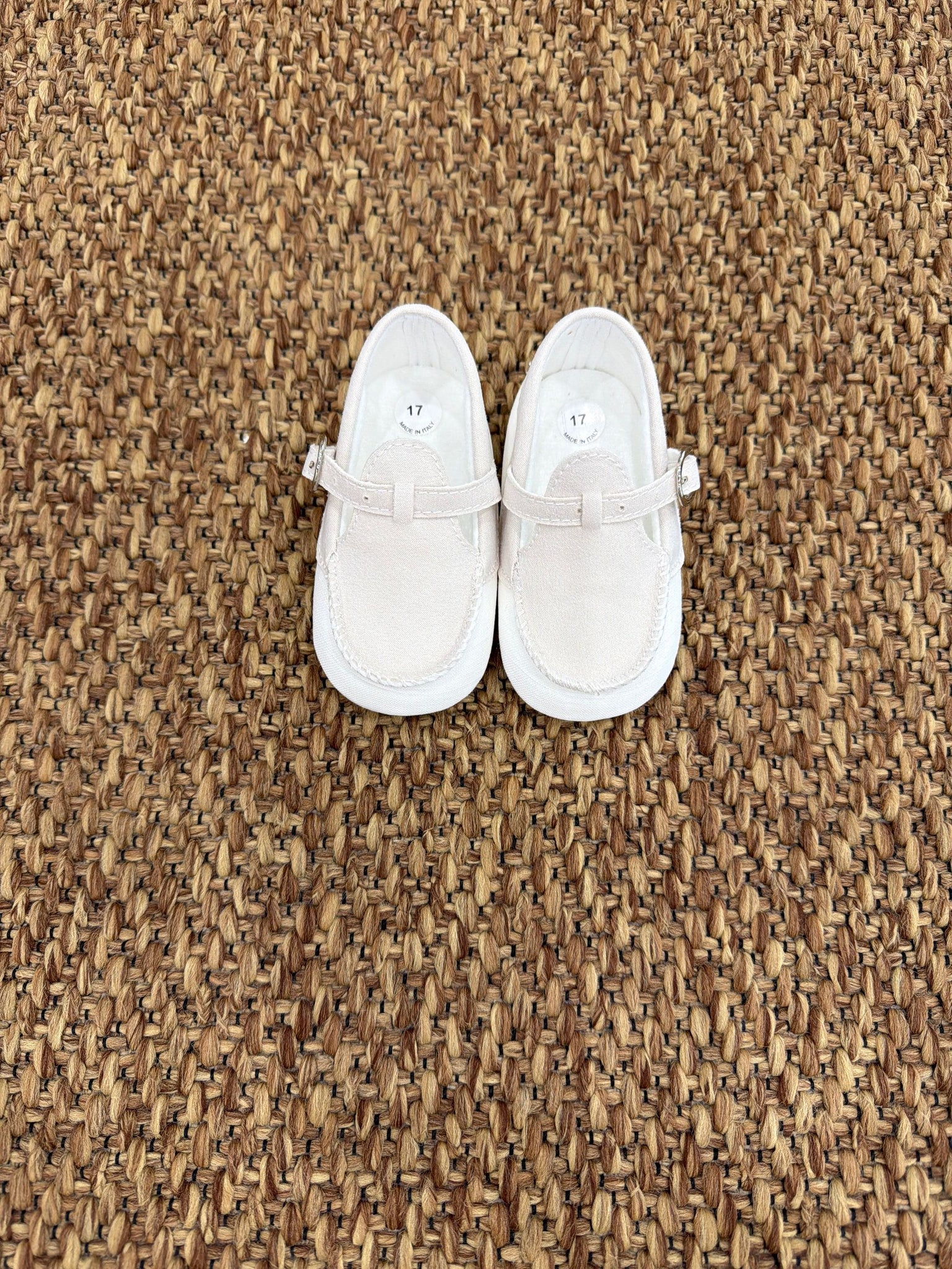 Eleganti scarpine bimbo modello mocassino, perfette per completare un look raffinato nelle occasioni speciali o per aggiungere un tocco chic all’outfit quotidiano. Realizzate in materiale morbido e confortevole, assicurano una calzata delicata e avvolgente. Il design classico con cuciture a vista richiama lo stile dei mocassini tradizionali, unendo stile e praticità.