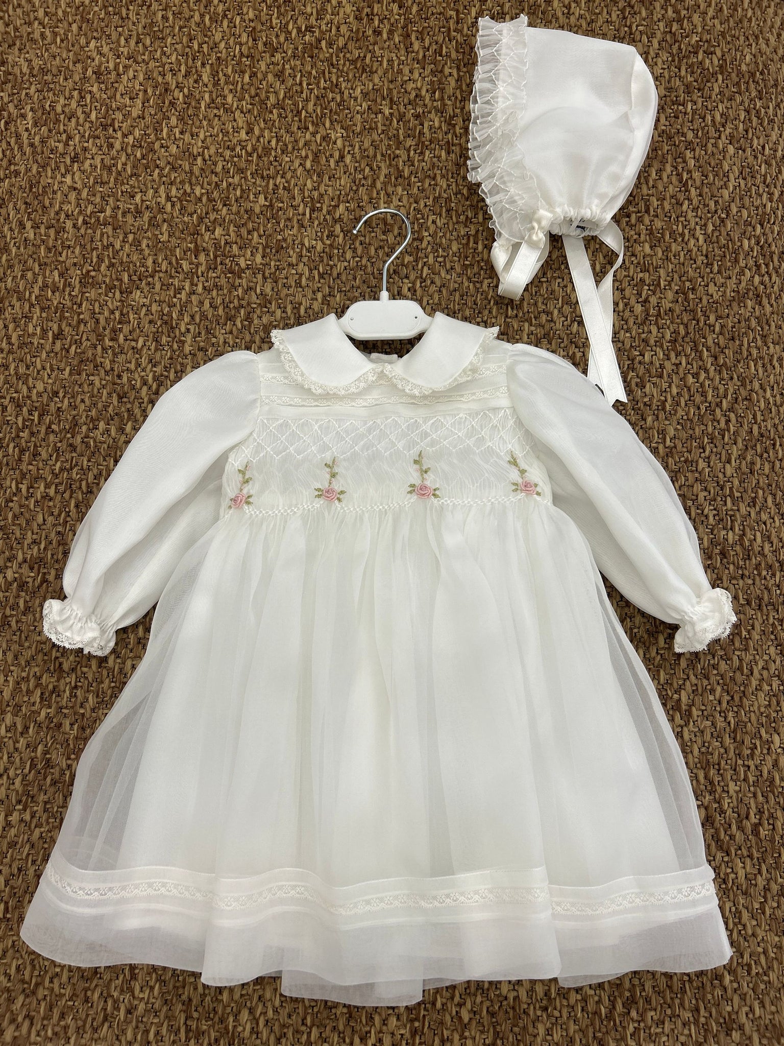 Abito cerimonia bimba con cuffia roselline Piccola Giuggiola