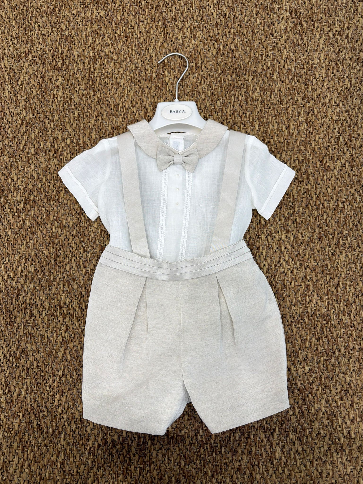 Eleganza senza tempo per i piccoli bimbi: questo completo da cerimonia è ideale per eventi speciali durante la stagione estiva, il set unisce stile e comfort grazie ai tessuti morbidi e rifiniti. Un outfit perfetto per rendere indimenticabili battesimi, feste o cerimonie.