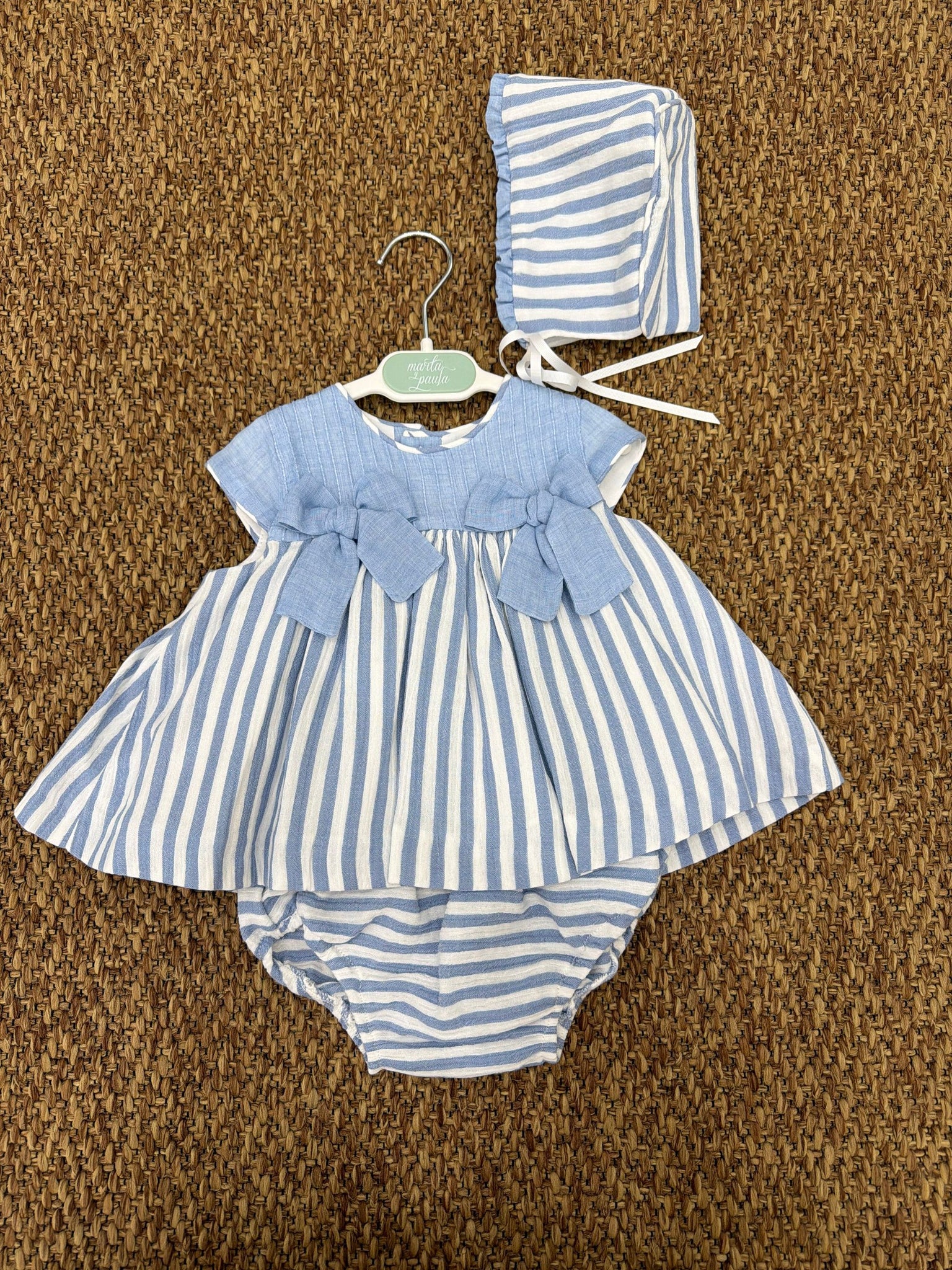 Completo bambina 3pz a righe con fiocchetti Marta y Paula