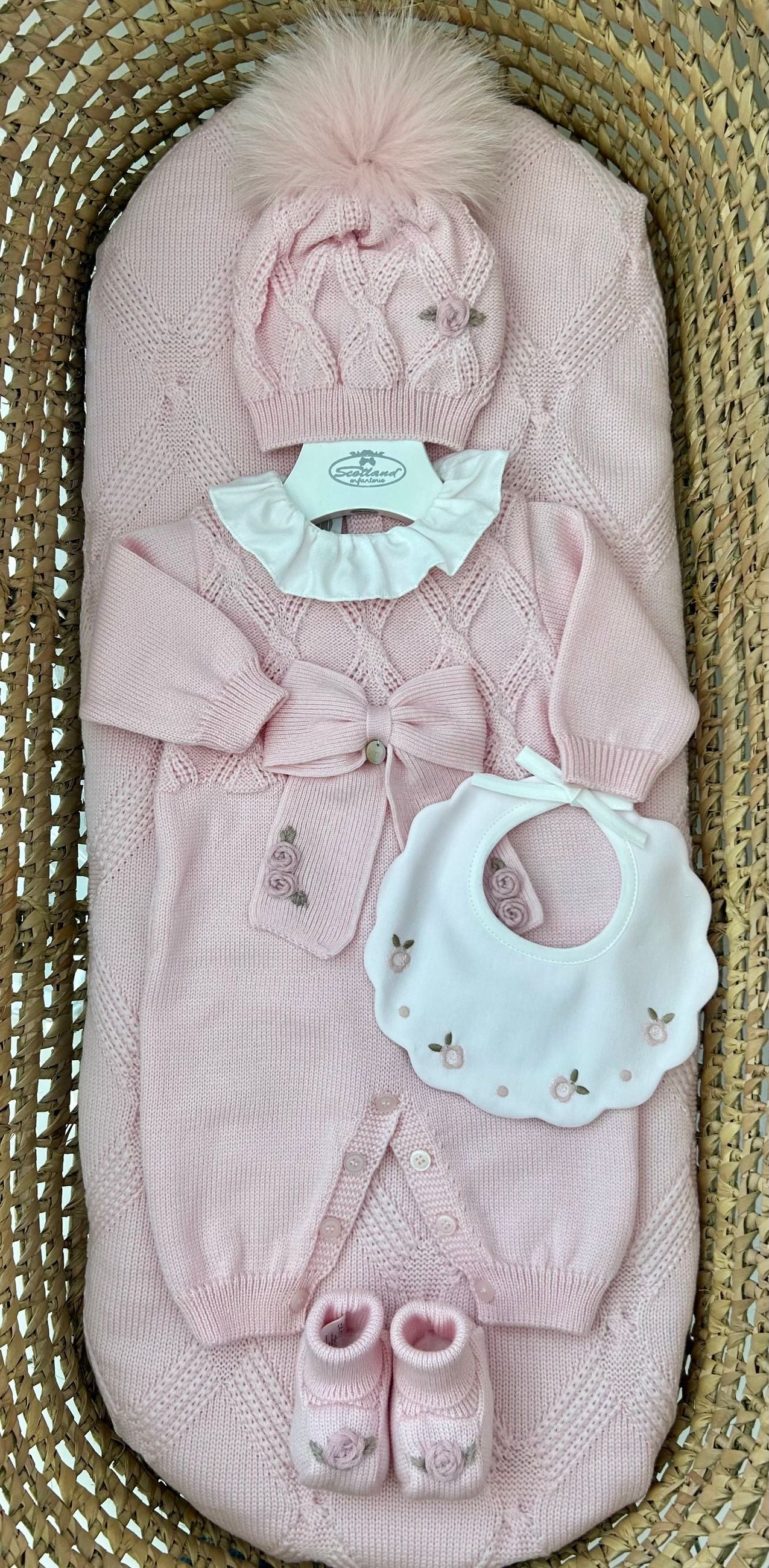Tutina neonata roselline con cappello e scarpine Marlù