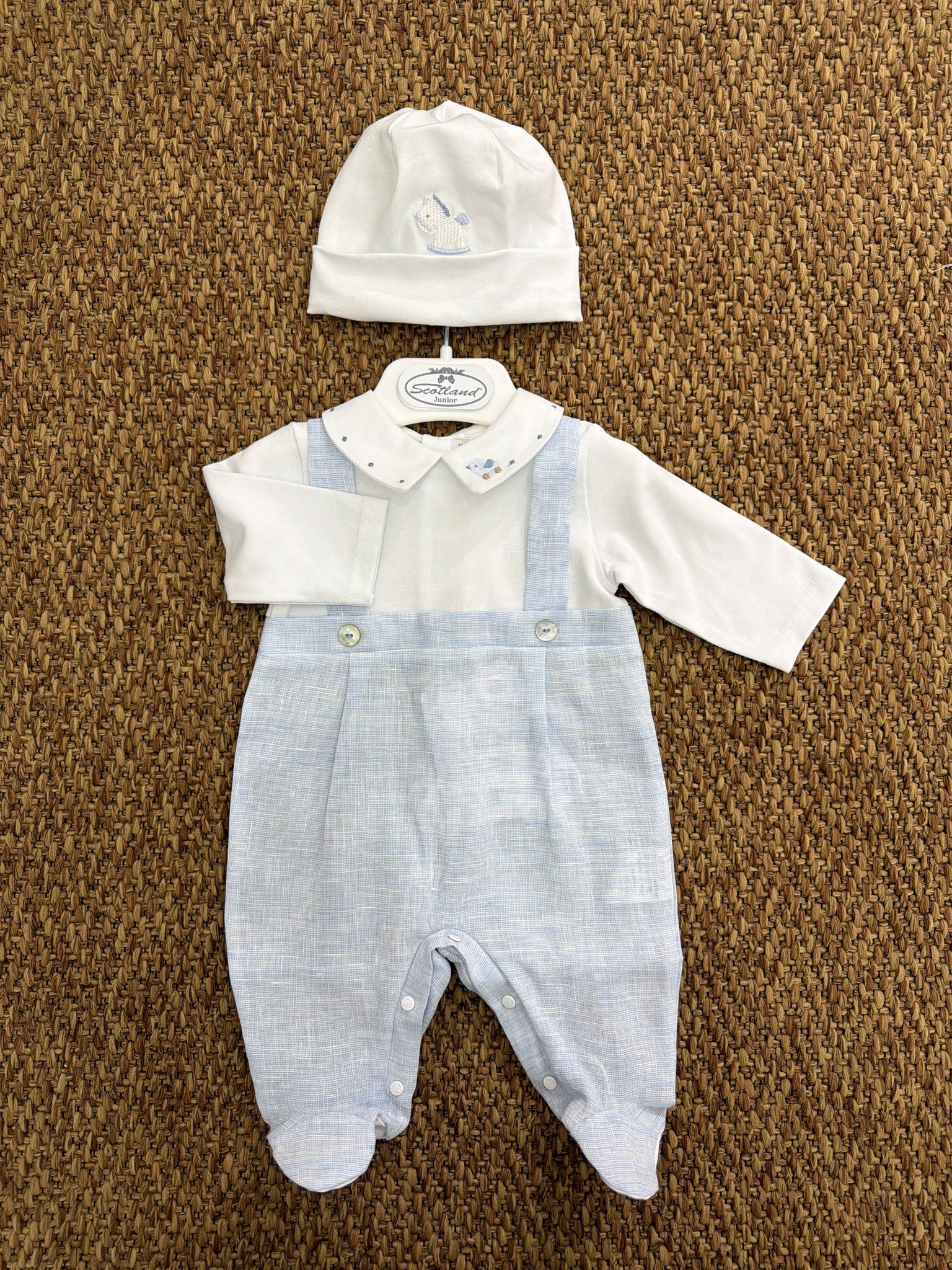 Tutina neonati stile salopette con ricamo Barcellino