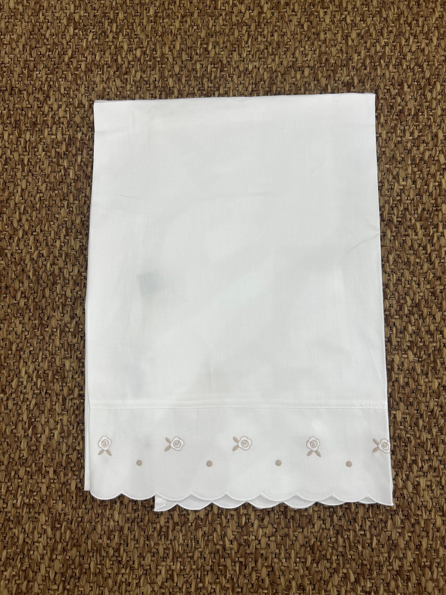 Questo lenzuolo per culla è realizzato in tessuto naturale e traspirante, ideale per garantire un riposo sereno. Perfetto per accogliere i sogni dei più piccoli, è studiato per adattarsi perfettamente al materassino della culla, restando sempre ben teso. Un accessorio indispensabile, pensato con amore per le prime dolci nanne.