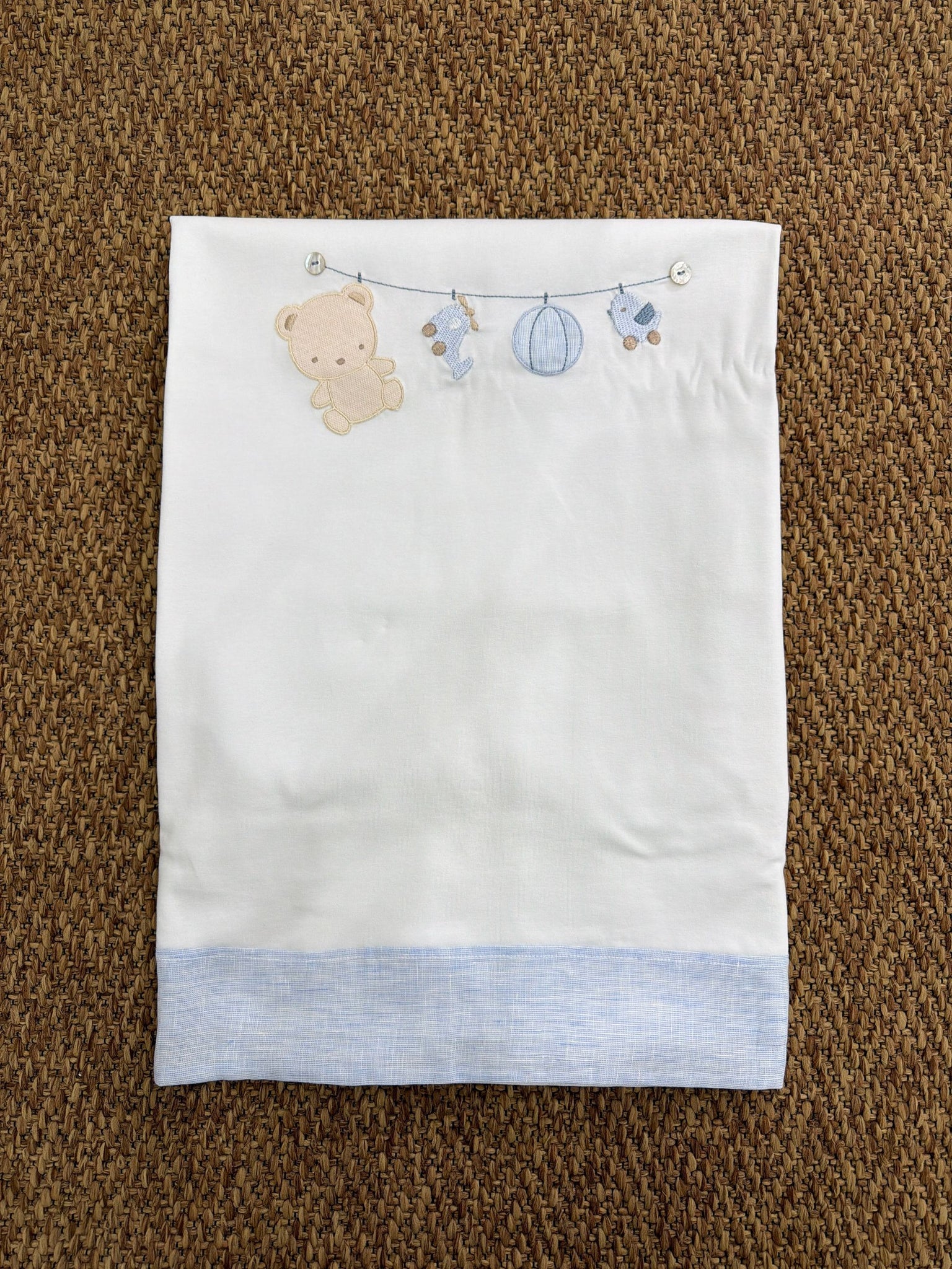 La copertina è un morbido abbraccio di calore e delicatezza per il tuo bebè. Realizzata in tessuti soffici e traspiranti, è perfetta per la culla, il passeggino o i momenti di coccola.